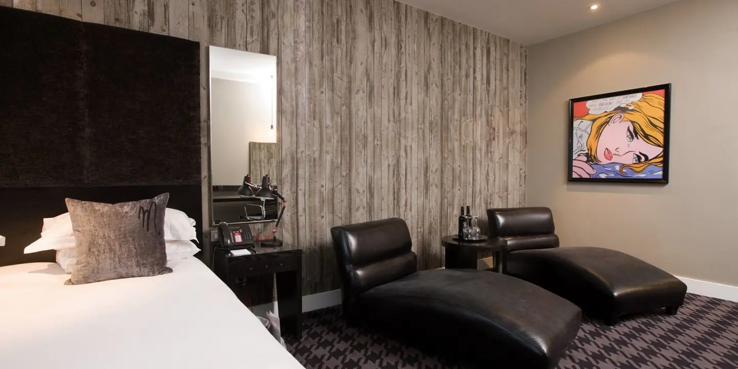 Luxurious club deluxe double with a chill out area for you to relax and soak up your super slinky room. Complete with king bed, separate shower and bath as well as those all important extra Mal ingredients.