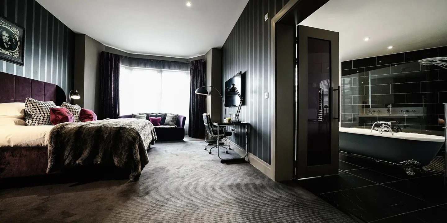 A spacious suite with separate living areas, offering bridge and V&A museum views. Enjoy the monumental king-sized bed, widescreen TV or round day bed in your lounge. The generous bathrooms come with feature roll top bath, double monsoon walk in showers and double sinks.