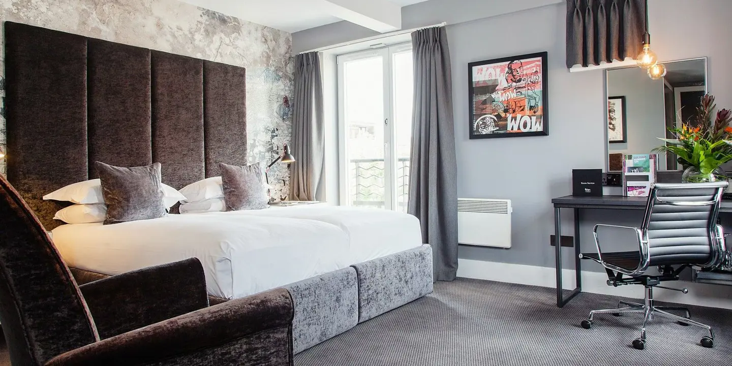 Comfortable standard twin room with two single beds, en-suite shower over bath and all the little luxuries that you could ever need. From the all-essential hair dryer to Mal toiletries and smart TV. Some rooms offer a lounge chair also. Two's company even if it's purely platonic or strictly corporate.